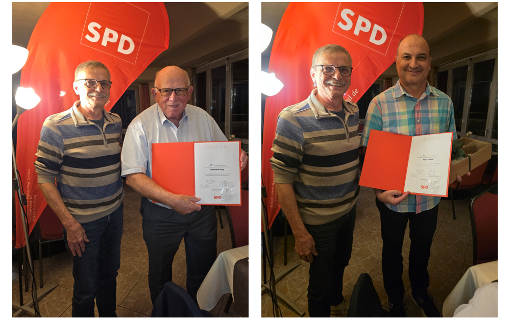 Bei der Jahreshauptversammlung des SPD-Ortsvereins Kuppenheim am 7.10.2025, konnte unser Vorsitzender Klaus Schulz, Ehrennadeln und Ehrenurkunden an langjährige Parteimitglieder überreichen.